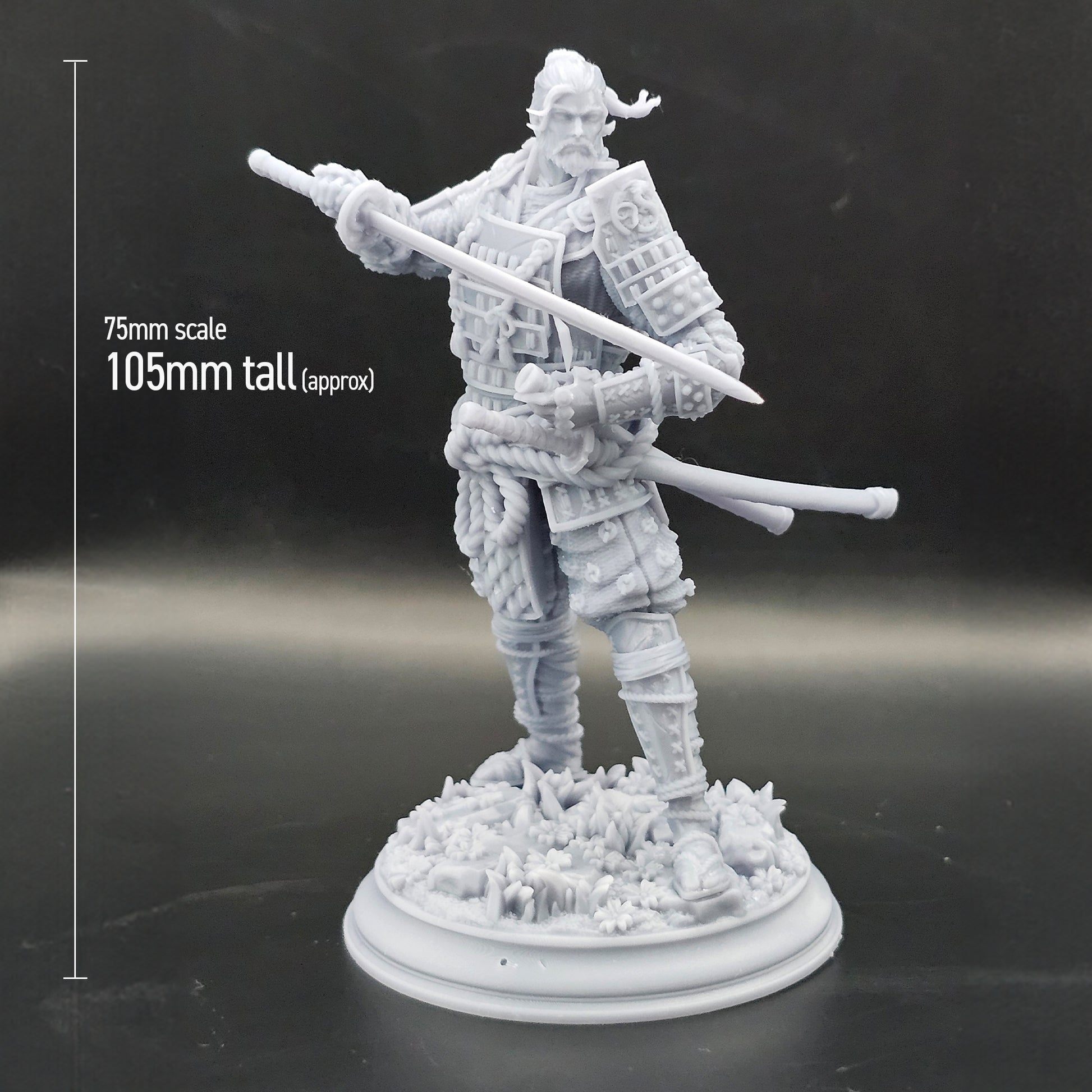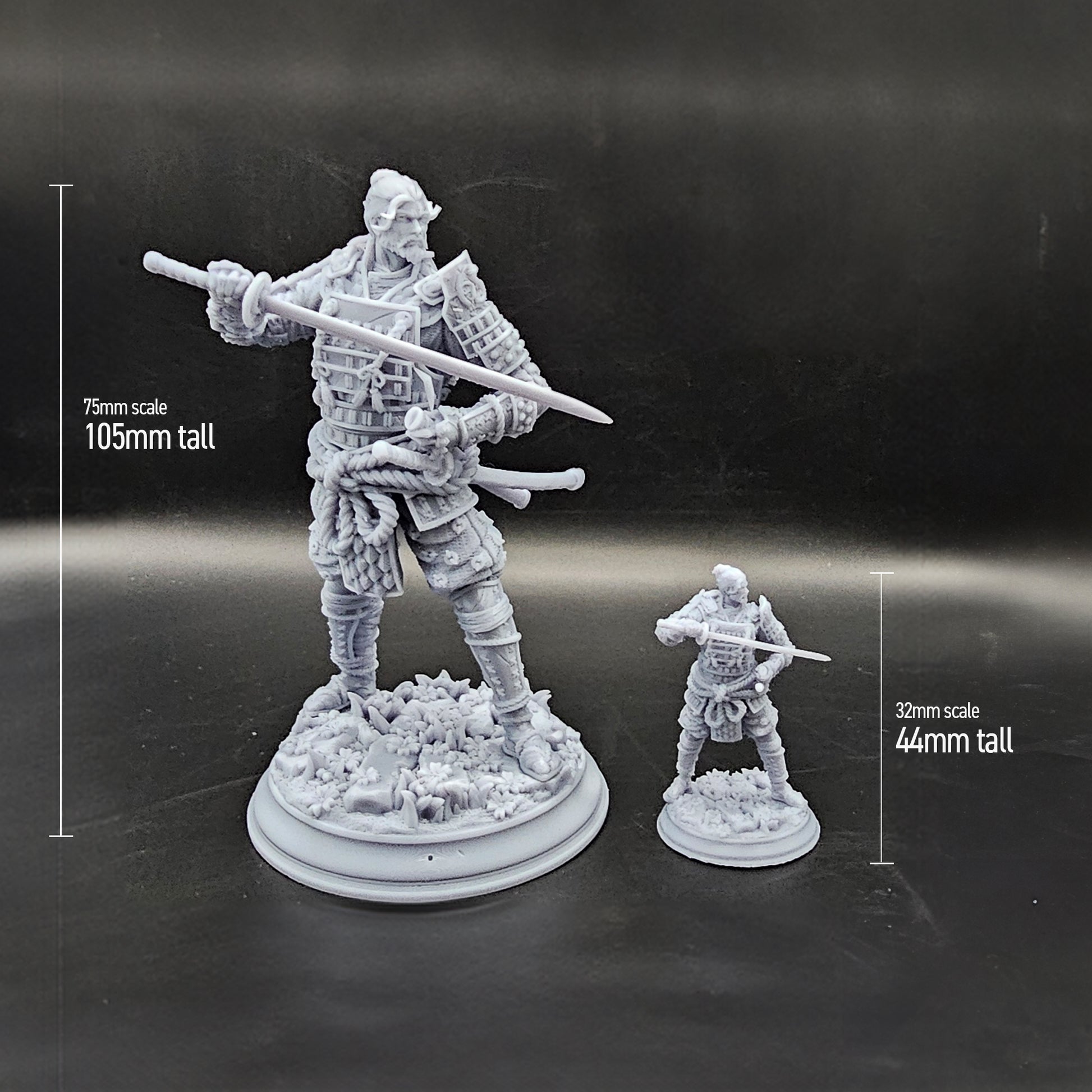 This highly detailed 32mm and 75mm scale DnD miniature is perfect for Fighters, Rangers, and wandering warriors in tabletop RPGs like Dungeons & Dragons and Pathfinder. Bring Saburo’s tragic tale to life on your battlefield!